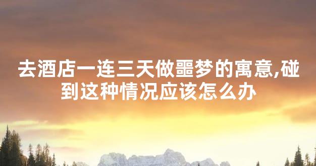 所以,去酒店一连三天做噩梦的寓意是什么,这可能是说明这个酒店和你的磁场不合,如果一直在这个酒店住下去可能会影响到身心健康,因此比较好的做法是换一间让自己感到舒服的酒店居住。